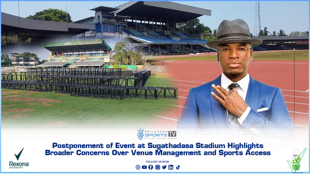 The postponement of the Ne-Yo Live in Sri Lanka concert, scheduled to take place on December 28 at the Sugathadasa Outdoor Stadium, has prompted renewed public discussion regarding venue management procedures, financial compliance, and the use of national sports facilities for non-sporting events. In a brief statement issued via social media, the event organisers, Brown … Continue reading Postponement of Event at Sugathadasa Stadium Highlights Broader Concerns Over Venue Management and Sports Access